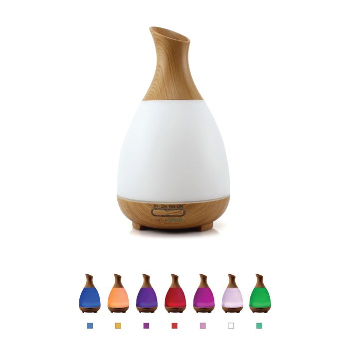 The InvisiPure Alta Aroma Diffuser can be used with your favorite essential oils. The aromatherapy diffuser uses cool mist ultrasonic technology to disperse ultra fine mist into the air. The unit measures 6.5 x 6.5 x 6.25 inches and holds up to 200ml of water.
